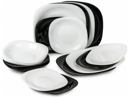 Stylová bílá jídelní souprava Tempered Carine White obsahuje 18 kusů nádobí.