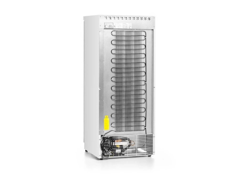 Velká kapacita a praktický vnitřní prostor – 580 litrů umožňuje skladování velkého množství produktů, tvarované vodicí lišty a tři pevné roštové police umožňují pohodlné uspořádání sortimentu. Ideální volba pro restaurace, jídelny a potravinářské obchody.