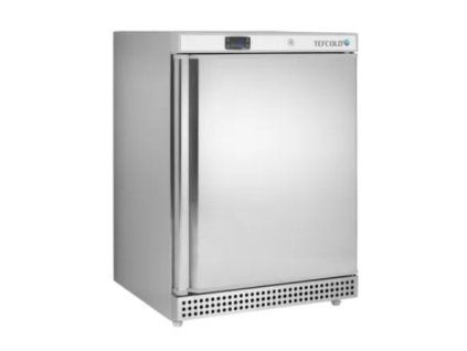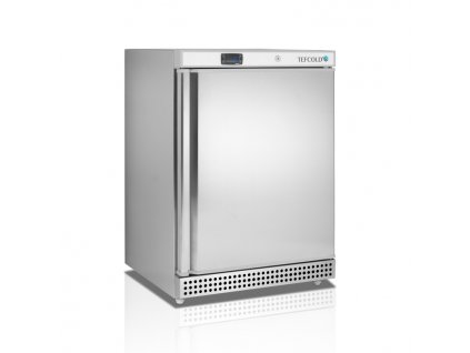 Jednodveřová chladicí skříň s plnými dveřmi, barva bílá.