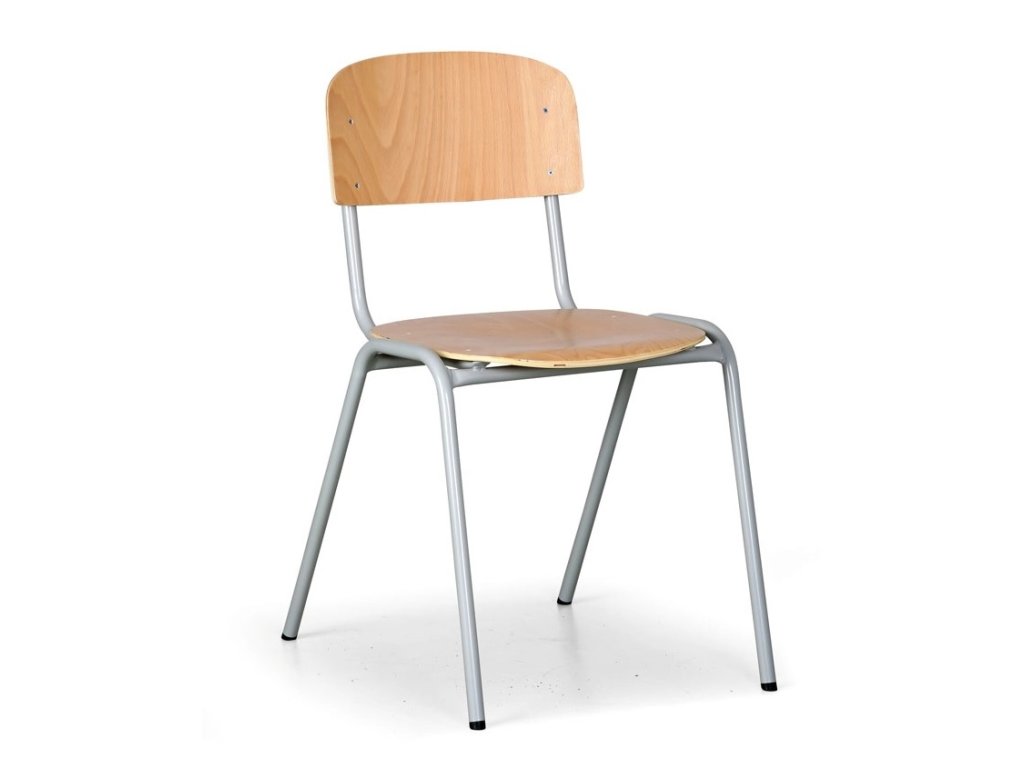 Univerzální stohovatelná židle využitelná v jídelnách, učebnách, školních třídách apod.