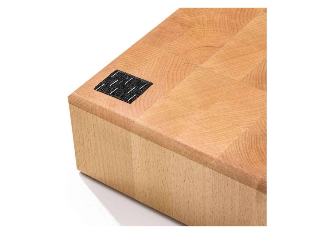 Hladký povrch pracovní desky umožňuje snadné udržování hygieny a přírodní struktura dřeva neztupuje ostří řeznických nástrojů.