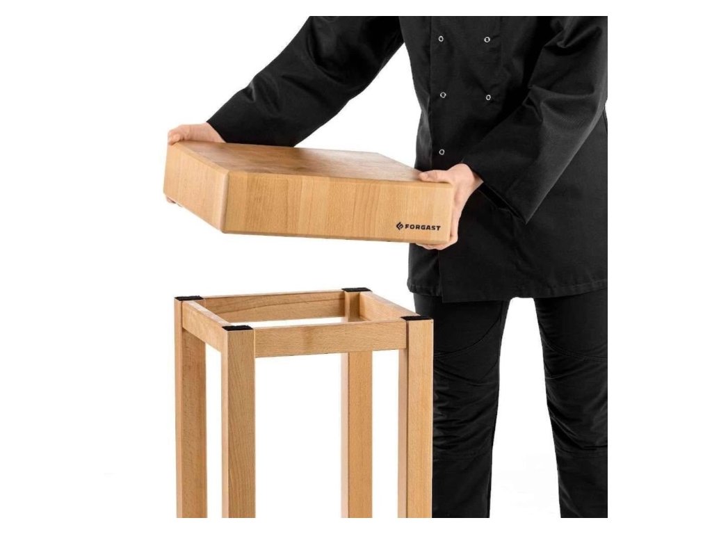 Masný blok dřevěný 40x50x20 cm na podstavci FORGAST FG12241 je pevný prvek vybavení každého profesionálního masného provozu, řeznictví nebo restaurace.