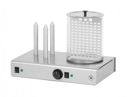 třítrnový ohřívač rohlíků a párků + nádoba + košík = plná výbava