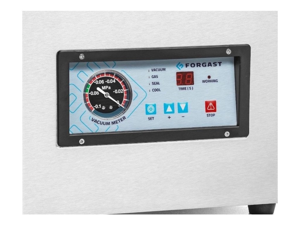 Základní sada obsahuje komorovou vakuovou baličku Forgast FG03435 a intuitivní ovládací panel.