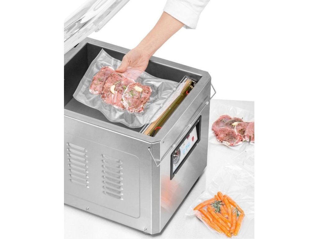 Komorová technologie umožňuje použití různých typů sáčků, což je důležité při rozmanitosti produktů v restauracích, řeznictvích nebo potravinářských provozech.