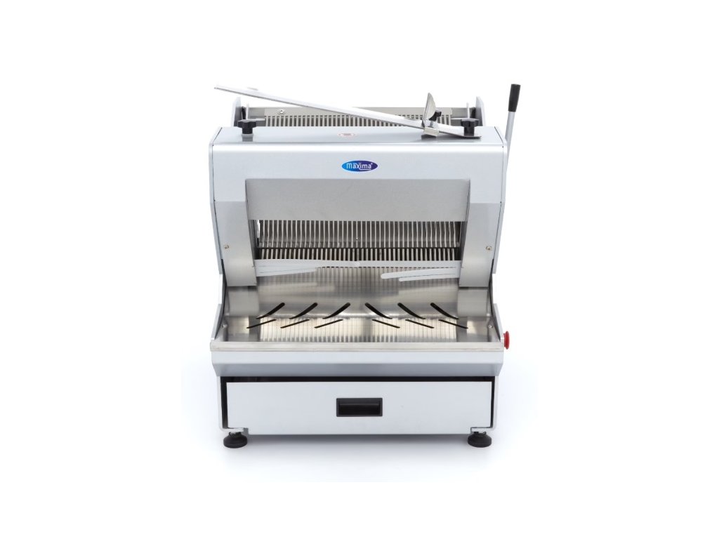 Elektrický kráječ chleba Maxima je nezbytným nástrojem pro každou pekárnu nebo supermarket. Bez námahy nakrájí chleba na úhledné a rovnoměrné plátky.