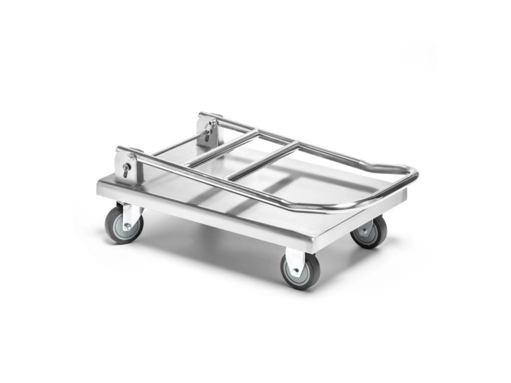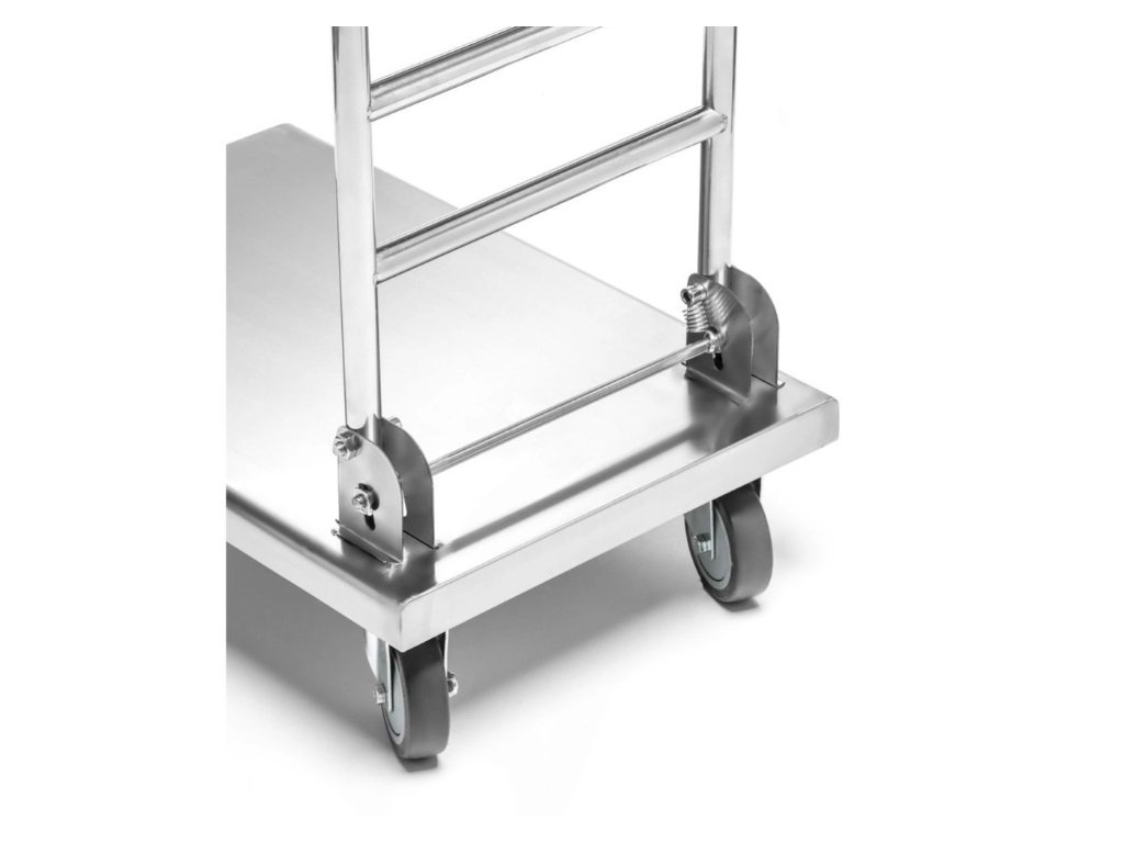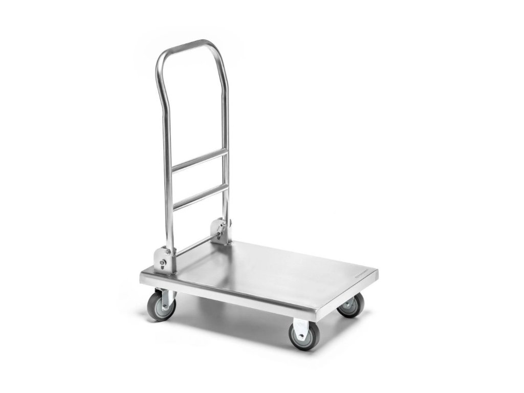 Skládací nákladní vozík s plošinou z nerezové oceli.