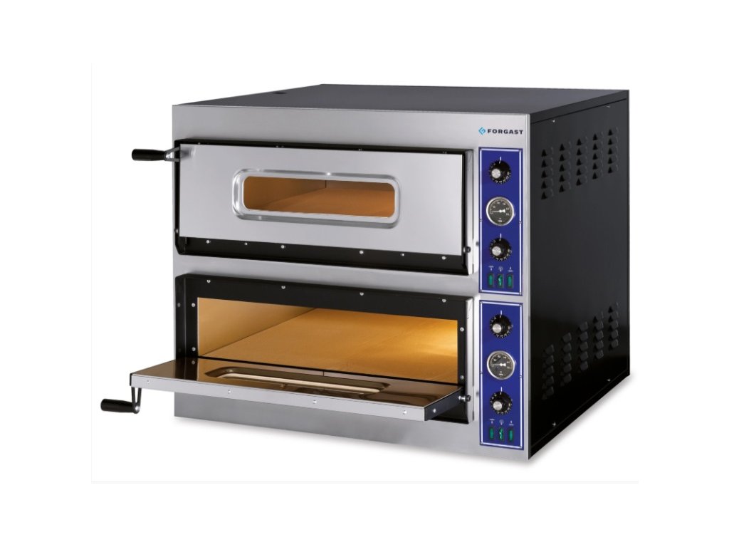 Dvoukomorová pec na pizzu FORGAST FG09560 je profesionální zařízení určené pro rychlé a efektivní pečení pizzy v gastronomických provozech, jako jsou pizzerie, restaurace nebo bary. Její charakteristické vlastnosti jsou dvojitá komora, která umožňuje současné pečení většího množství pizz, a pevná izolace zajišťující efektivní udržení tepla. Tento model se osvědčí všude tam, kde záleží na výkonu, kvalitě a spolehlivosti zařízení.