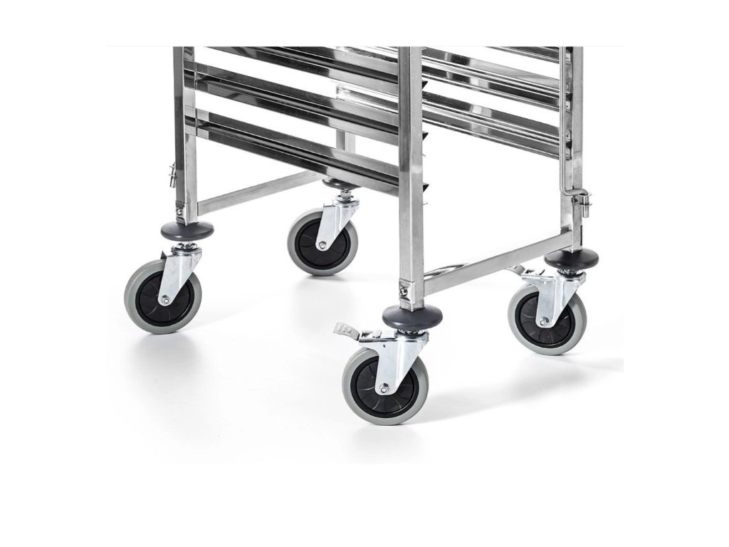 Čtyři otočná kolečka, z toho dvě s brzdami, umožňují snadné manévrování i v přeplněných kuchyňských prostorech a stabilní postavení při nakládání nebo vykládání GN nádob.