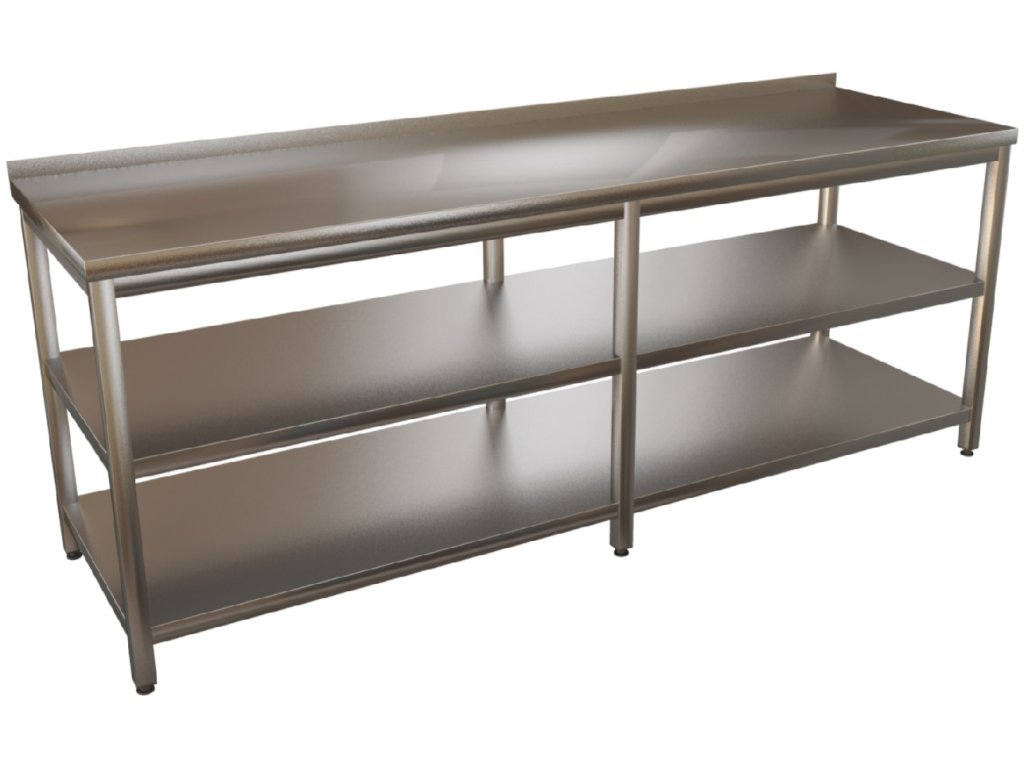 Stůl nerez s policemi dlouhý 6 nohou KSPPD - hloubka 600mm