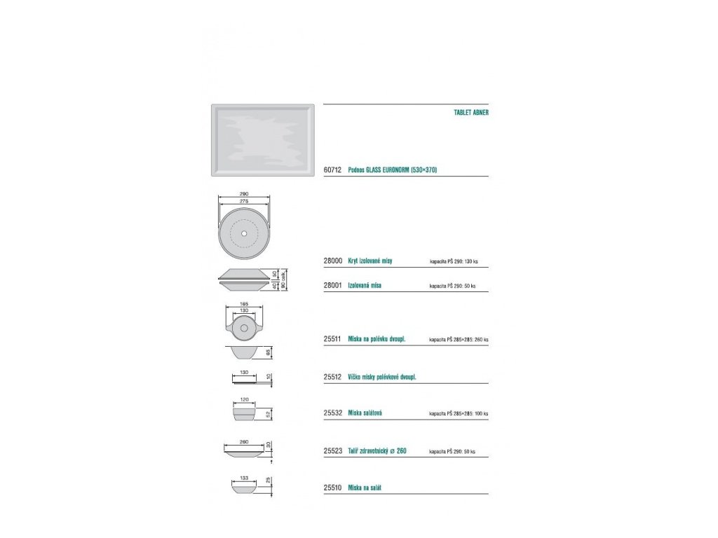 Tabletový systém Abner nerezový, celkový rozměr v mm: 530x370, více v příloze