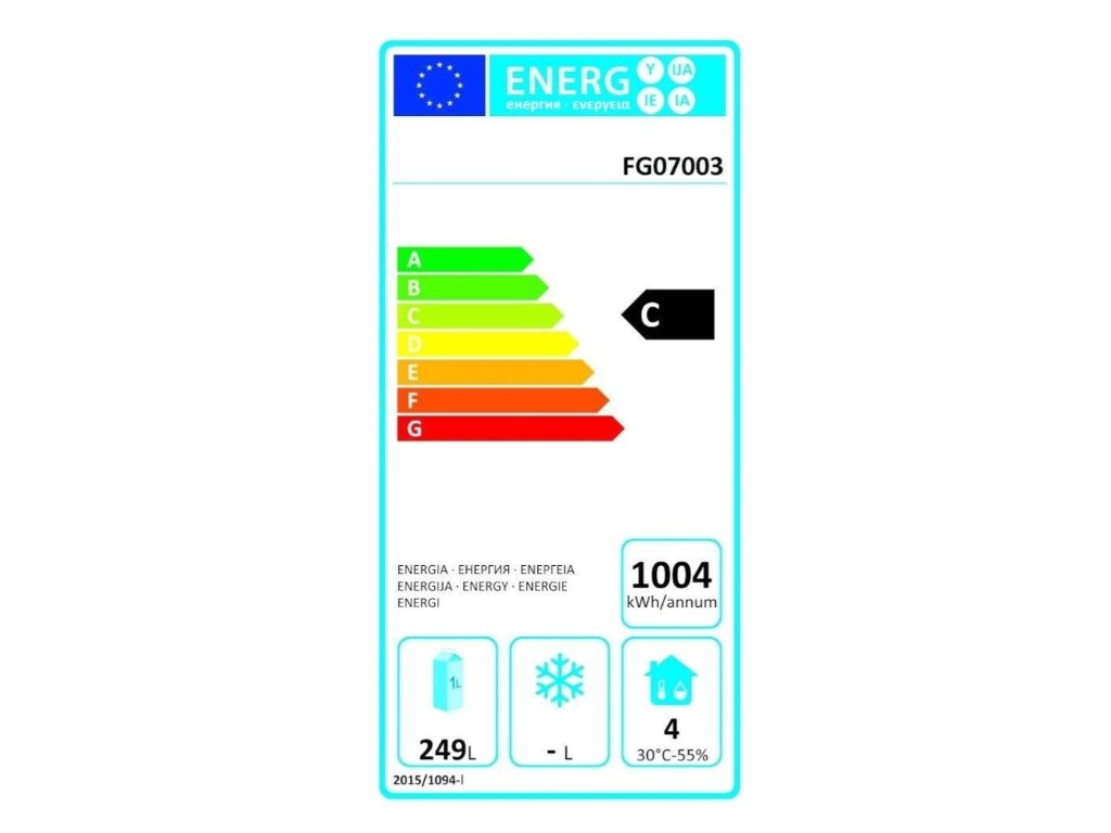 Třídveřová chladicí jednotka Značka Forgast s objemem 400 litrů.