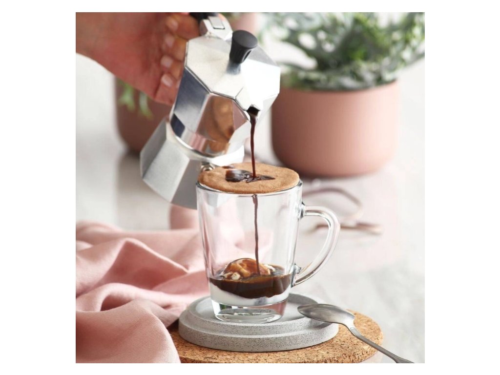 Vyrobeno z průhledného skla pro horké i studené nápoje.
